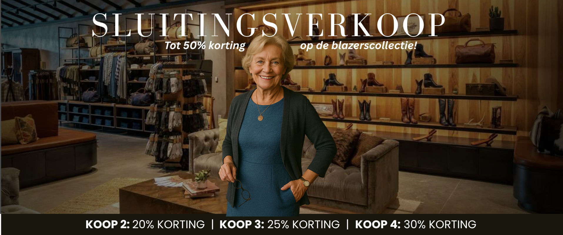 Als dank aan onze geweldige klanten bieden wij tot 50% KORTING op geselecteerde BLAZERS in de winkel.